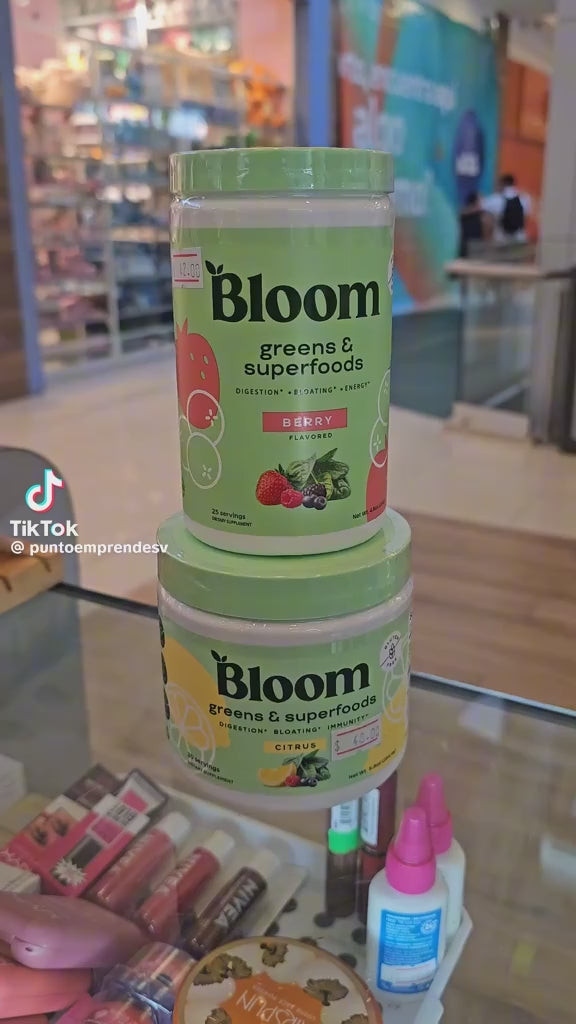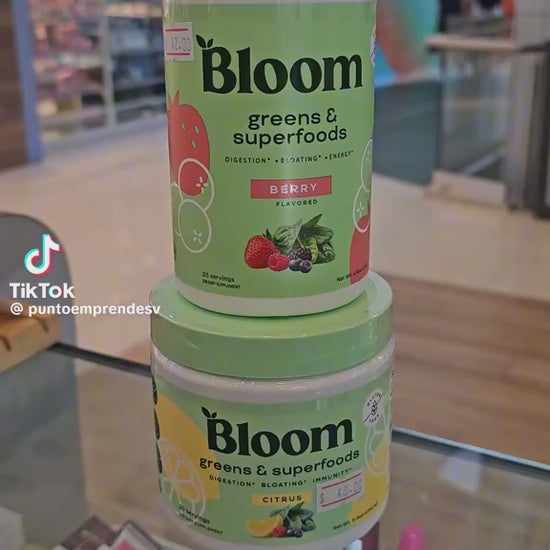 Sabor Berry ¡Bienestar diario en cada primicia! Bloom Greens & Superfoods es un suplemento en polvo diseñado para apoyar la digestión, reducir el aumento y aumentar los niveles de energía de forma natural. Su fórmula combina vegetales verdes, superalimentos, probióticos, fibras y antioxidantes en una mezcla deliciosa con sabor a frutas del bosque (baya). Ideal para quienes buscan mejorar su salud intestinal y sentirse con más vitalidad todos los días. Beneficios clave: Mejora la digestión Ayuda a reducir la pérdida Aporta energía natural Sabor agradable a frutos rojos Incluye superalimentos y vegetales verdes Perfecto para agregar a tu rutina diaria mezclándolo con agua, batidos o jugos.
